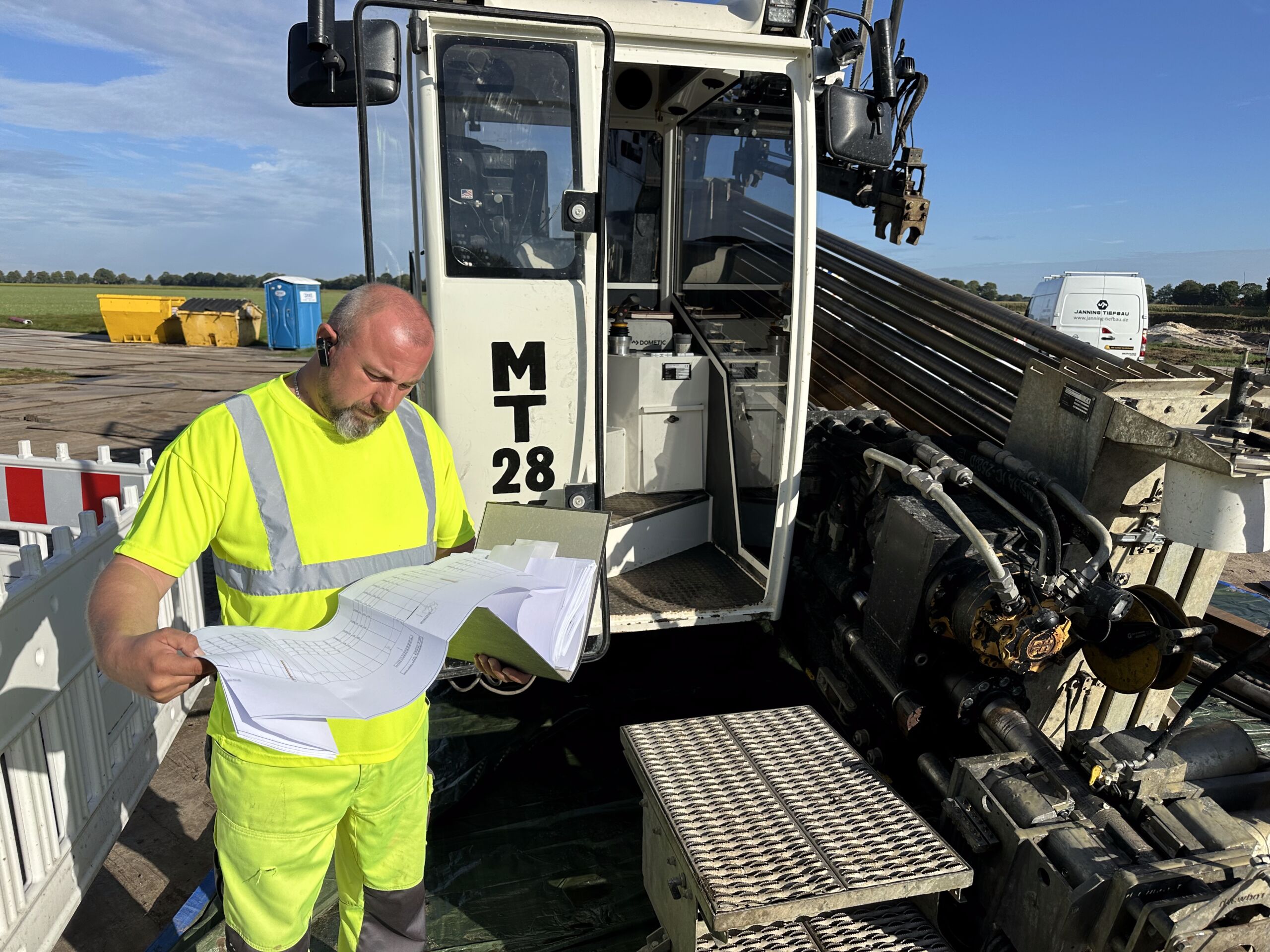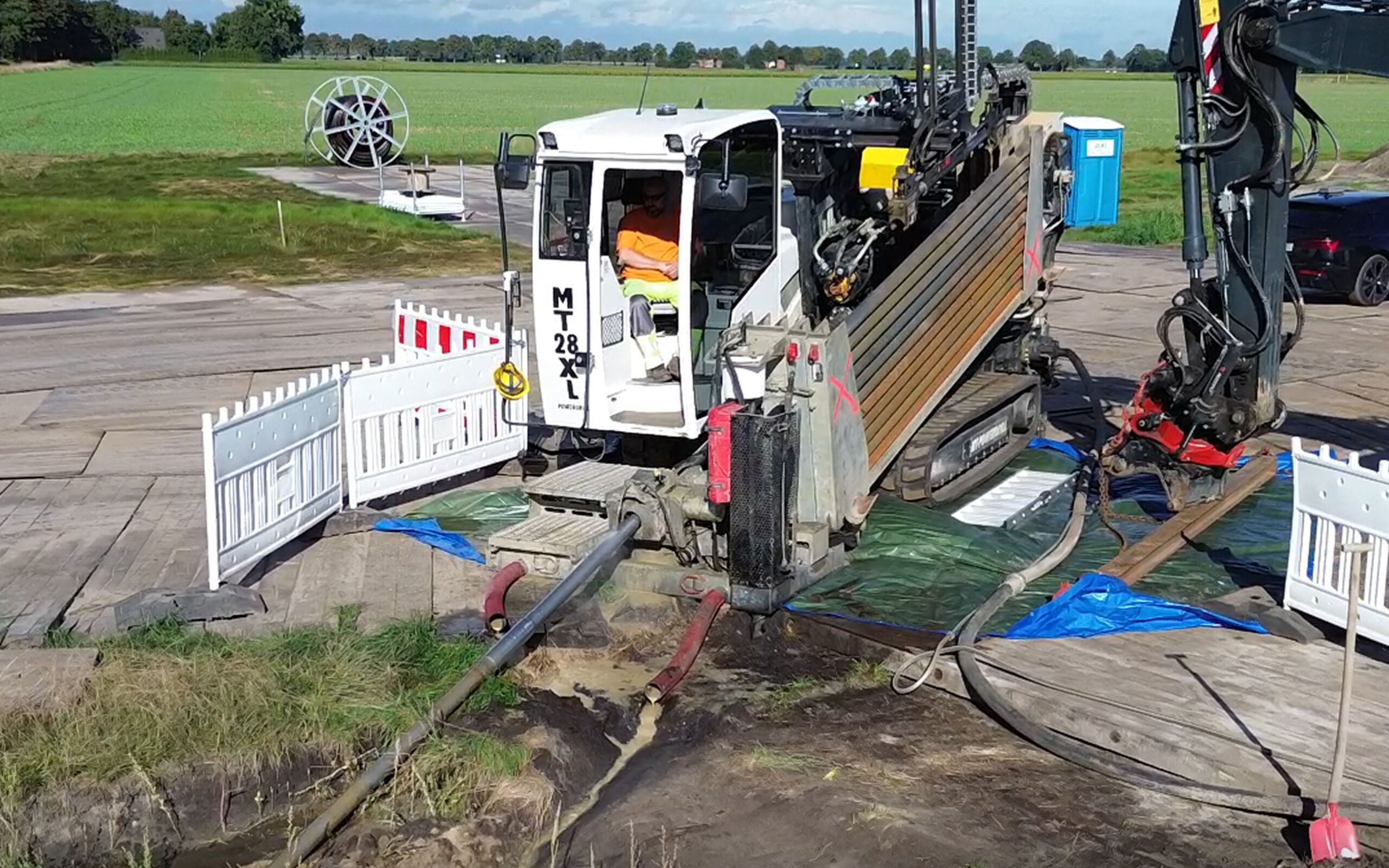 Die spezielle Betonit-Bohrspülung dient aber nicht nur zum Ausspülen des Bohrkleins. Dank ihrer speziellen Eigenschaften wird sie auch zur Stabilisation des gebohrten Kanals und zum Kühlen und Schmieren des Bohrkopfes der HDD-Anlage genutzt werden. Die Richtung des Bohrkopfes lässt sich durch das flexible Gestänge verändern und genau steuern.