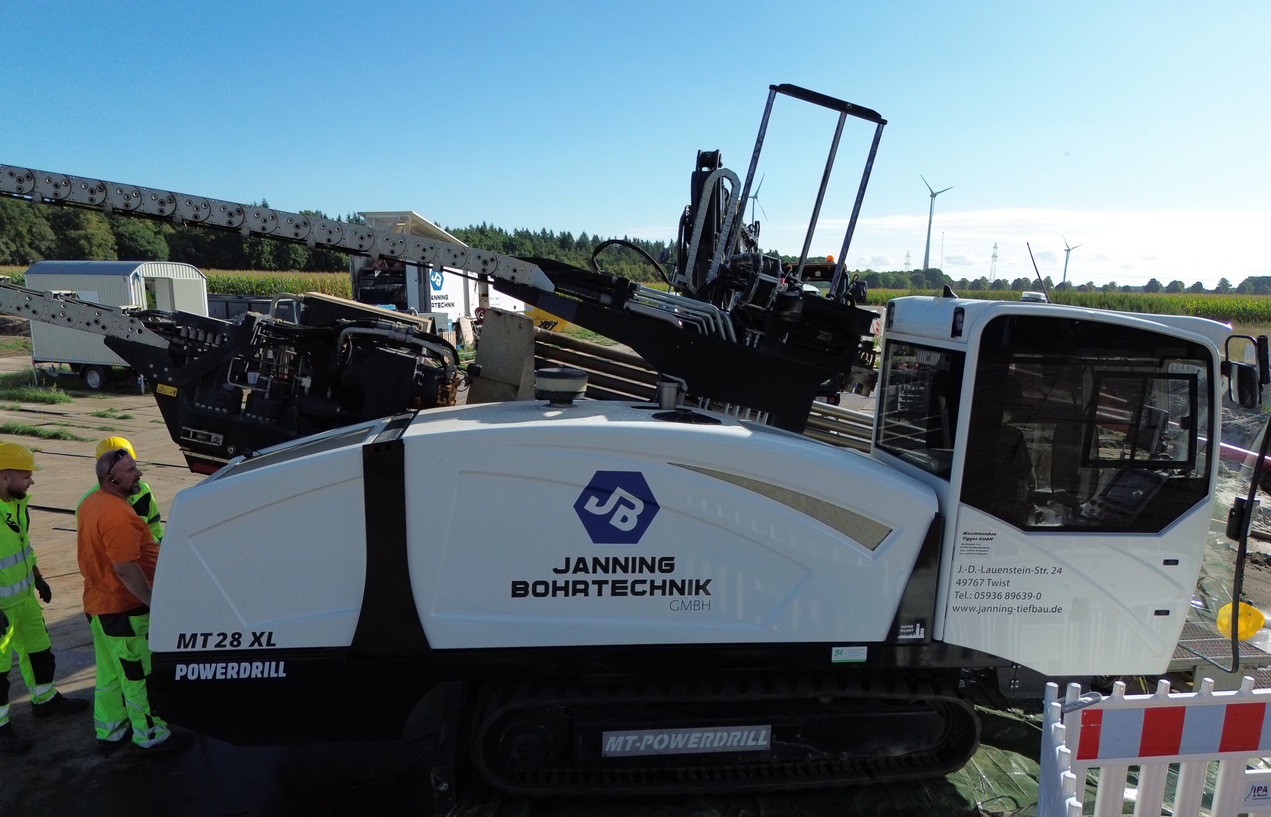 Wir sind im Besitz von 10 Bohranlagen. Unser jüngster Neuzugang in Sachen Bohrtechnik ist die MT60 Powerdrill/Rockdrill – das neueste Horizontalspülbohrsystem mit 60t Schub- & Zugkraft, Bohrdistanzen bis zu 700m bzw. 500m im Festgestein, 245 kW/333 PS, On-Board-Bentonitpumpe max. 1.250 l/min und max. Drehmoment von 25.000 Nm zum Verlegen großer Rohrquerschnitte.